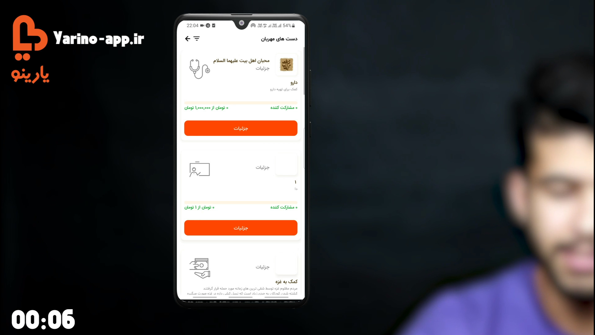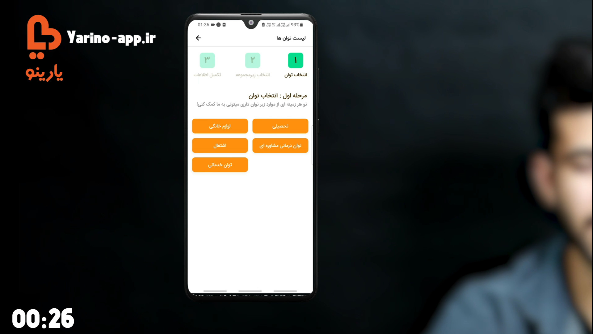خدمات اپلیکیشن یارینو در چهار بخش می باشد